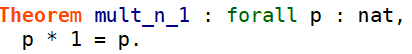 p * S O = p * O + p (rewrite theorem mult_n_Sm with n = p and m = O <-)